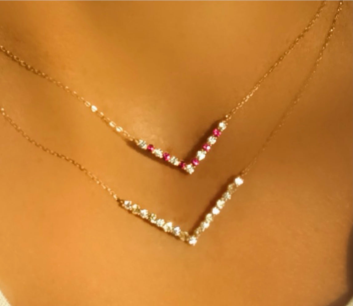 Necklace small Zircon white and pink 0.70ct GW 2.350g