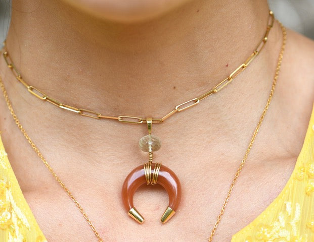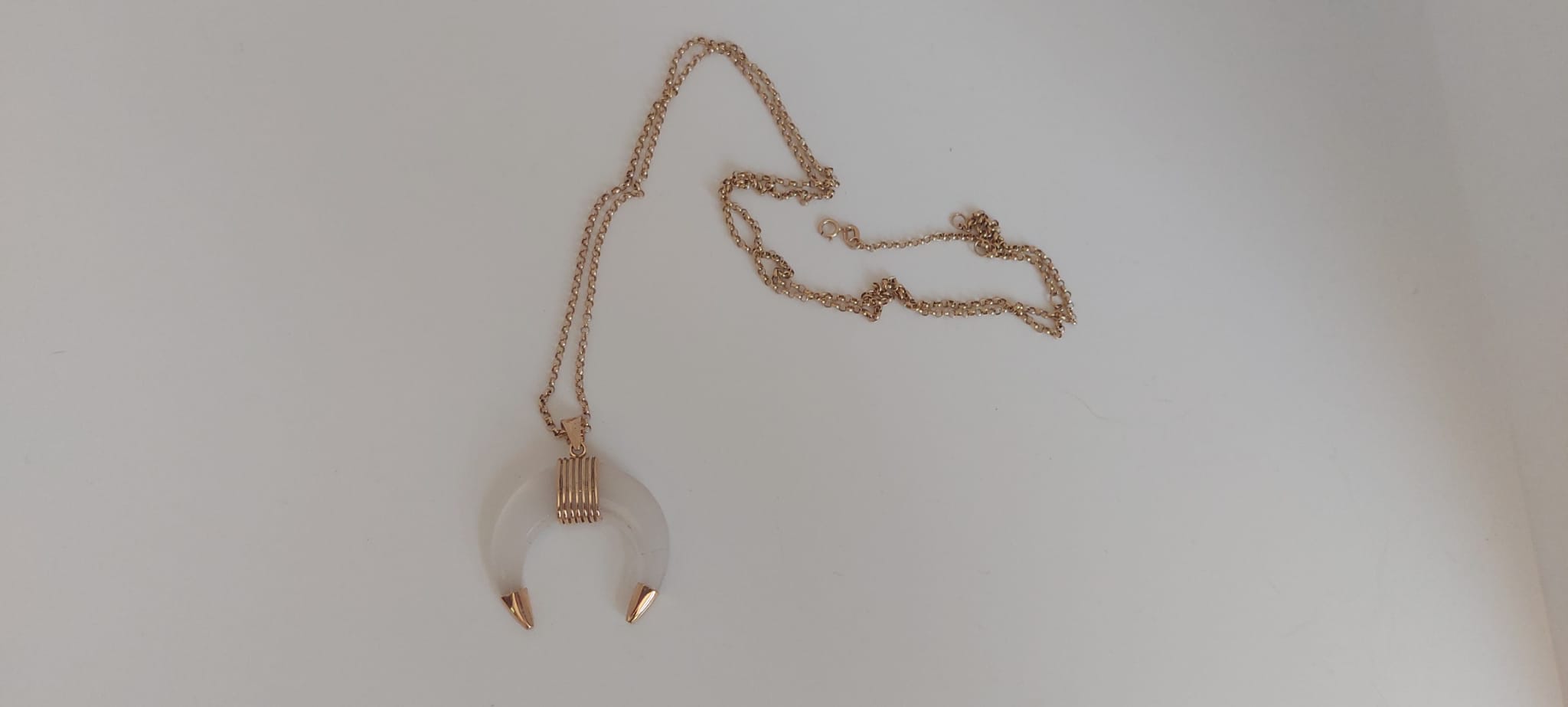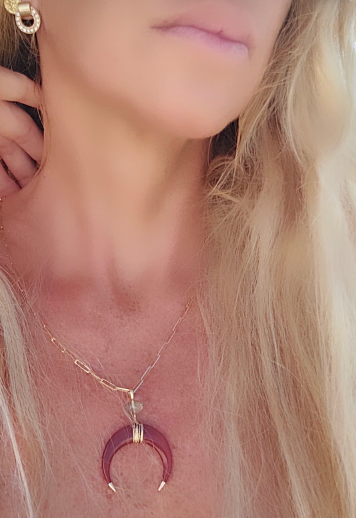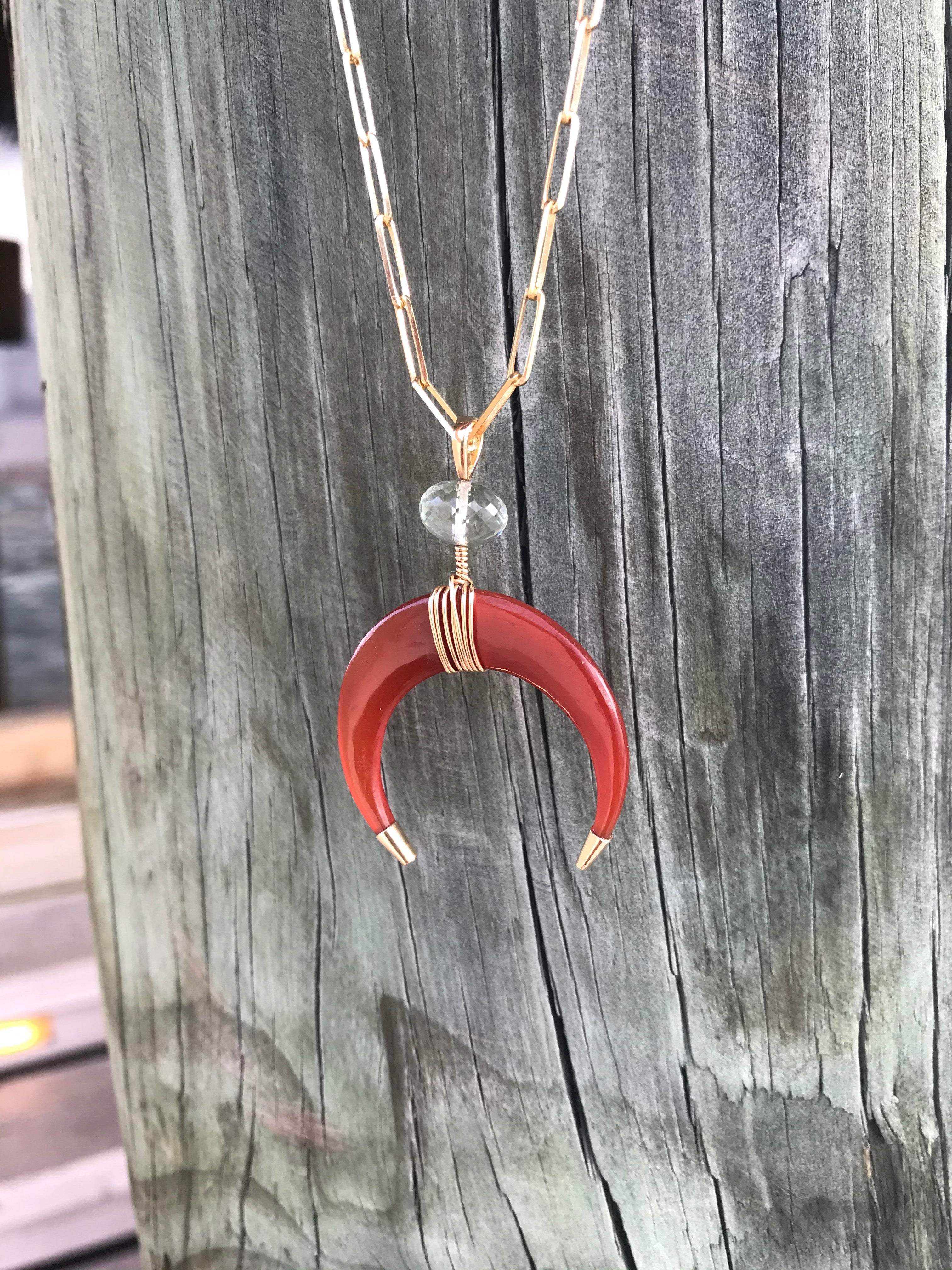 Crescent horn red agate or white /pendant big size 12.25 ct with 18k gold