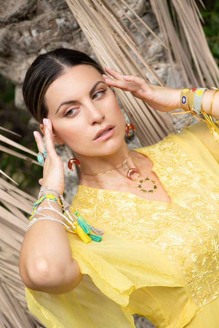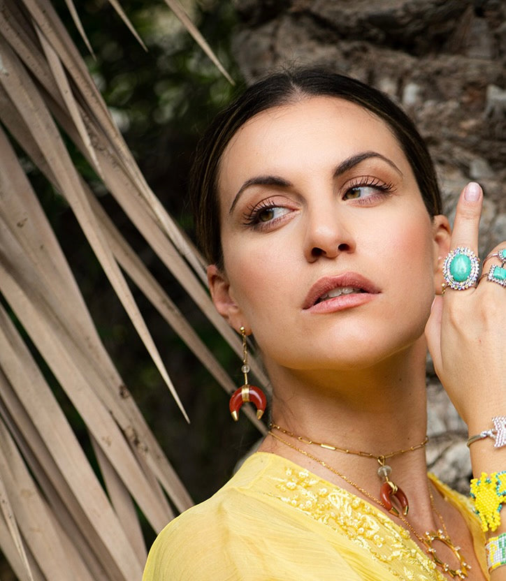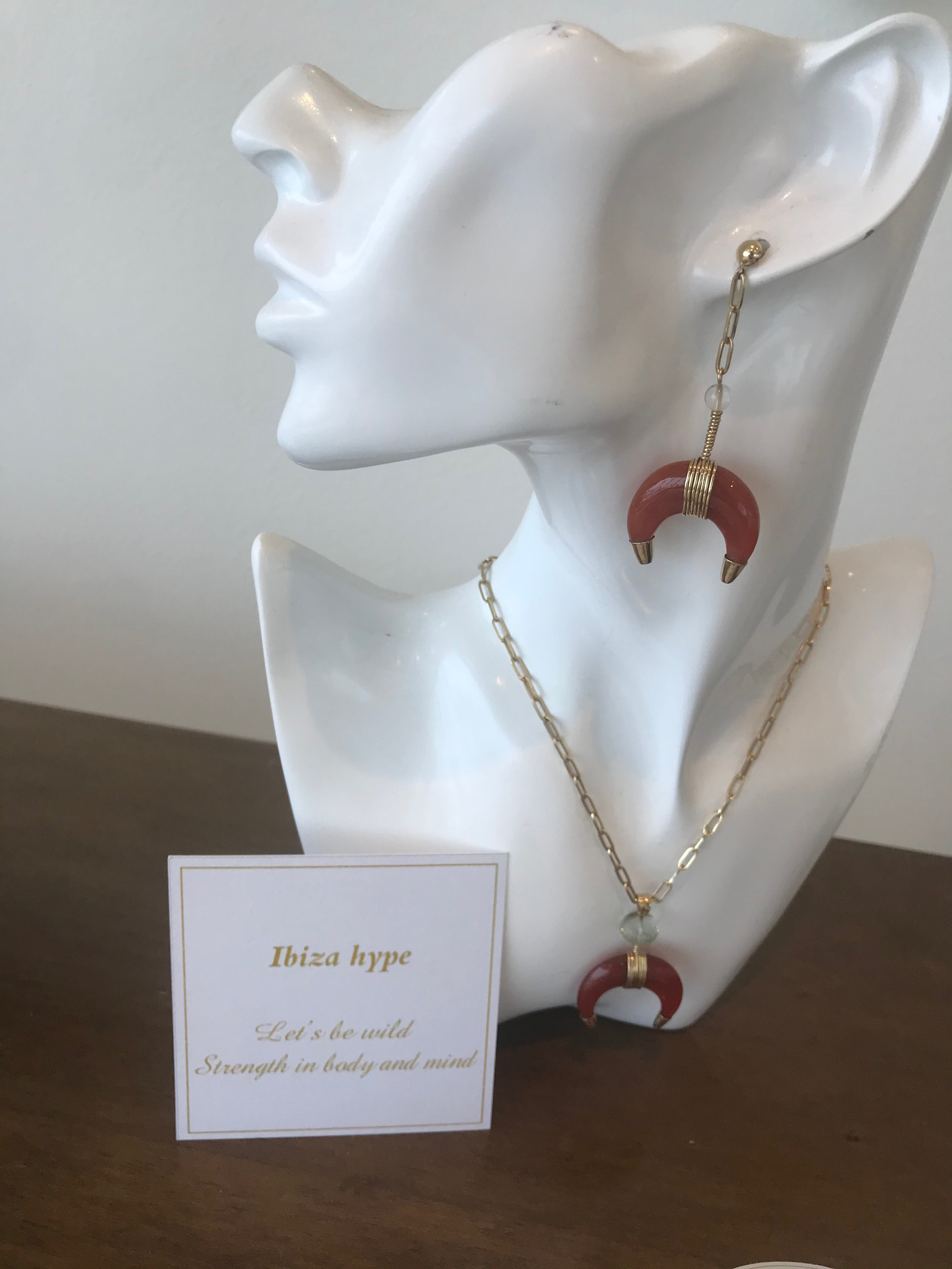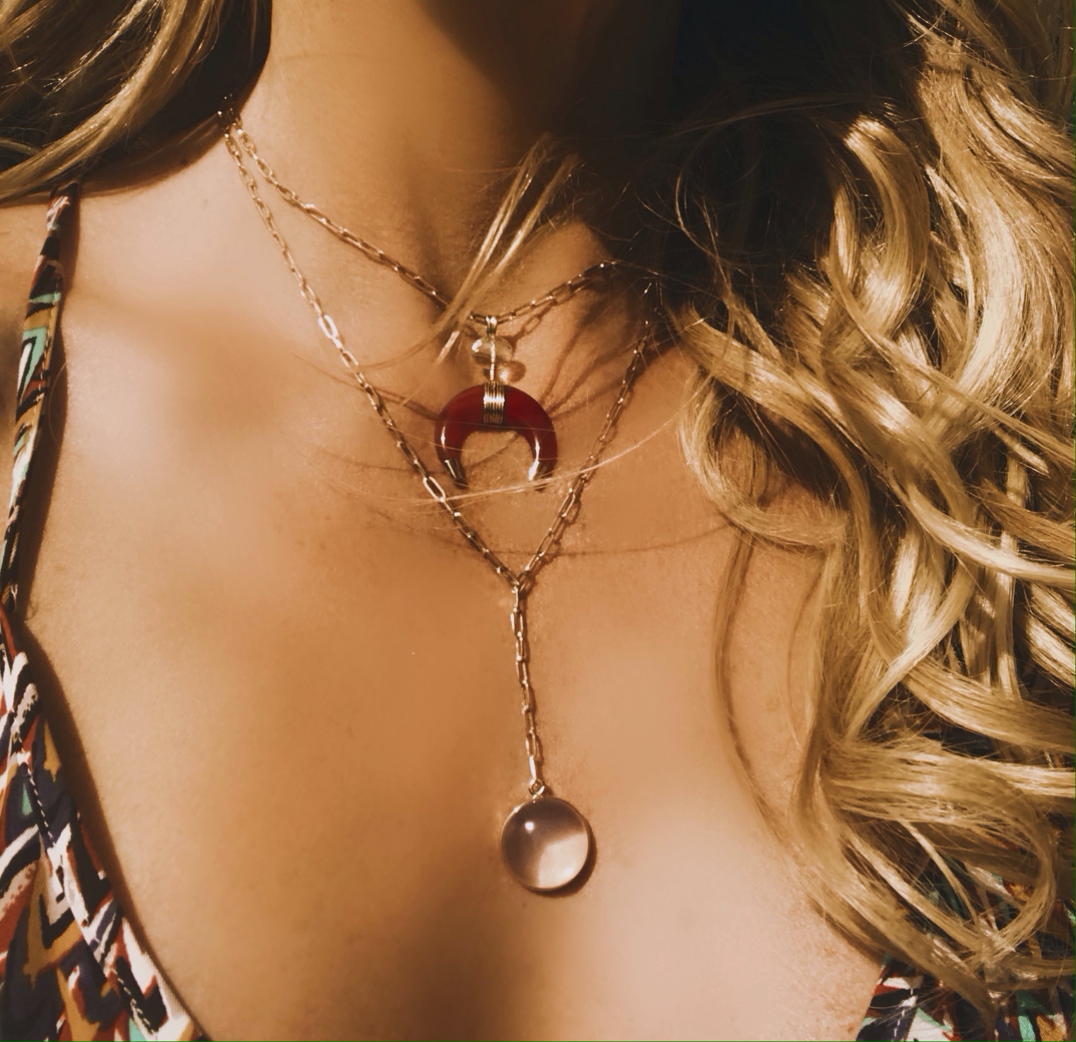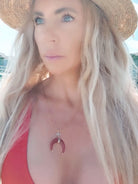 Crescent horn red agate or white /pendant big size 12.25 ct with 18k gold