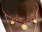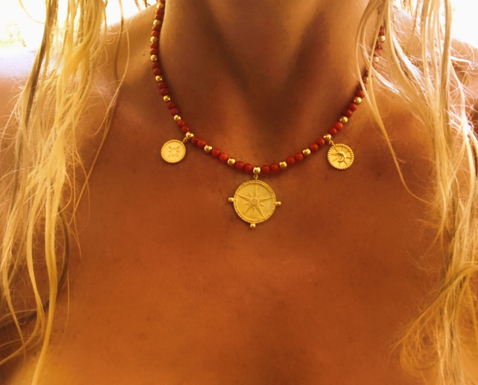 18k gold medallions of the Sun, Star and Moon hand drawings