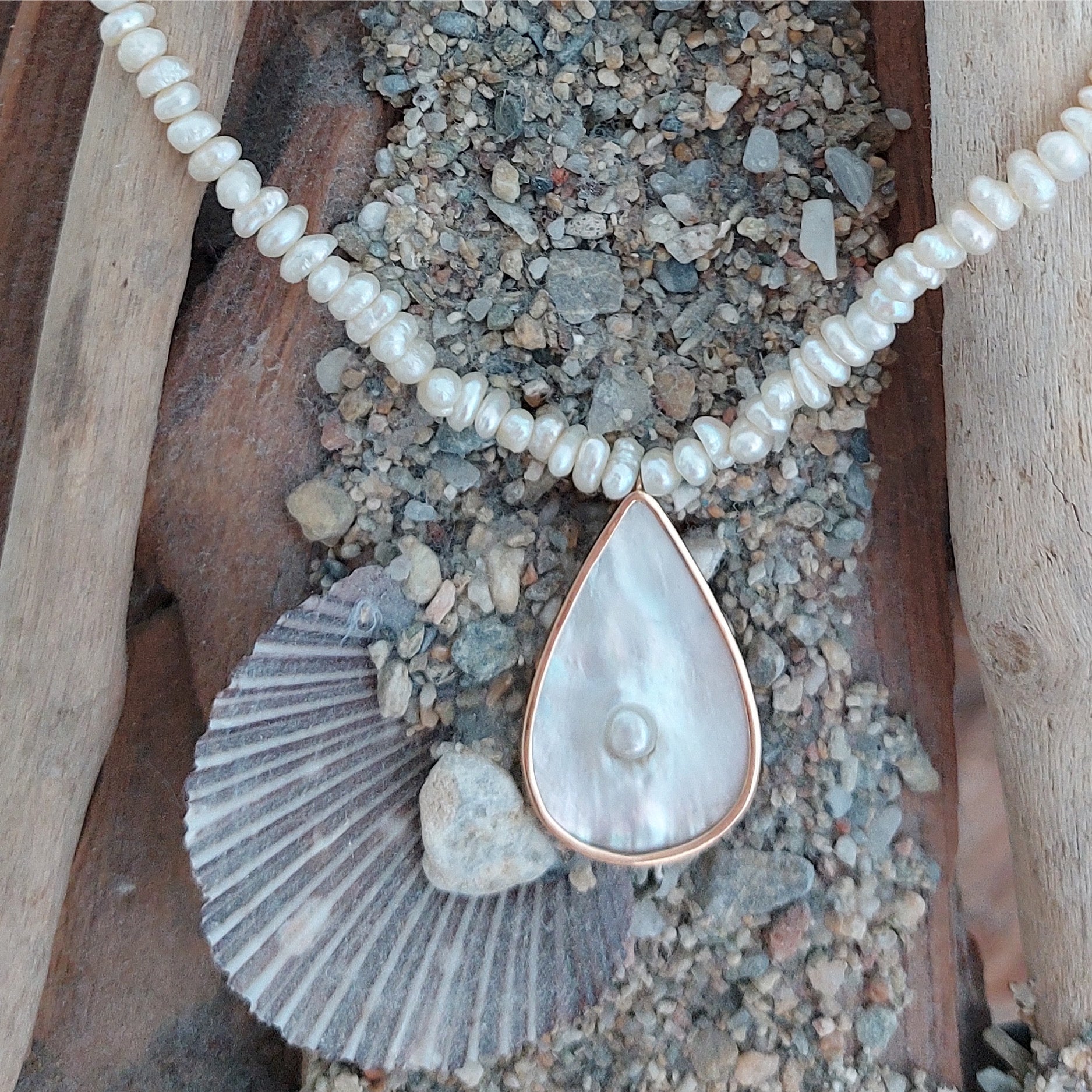 Pearl necklace with natural shell and pearl